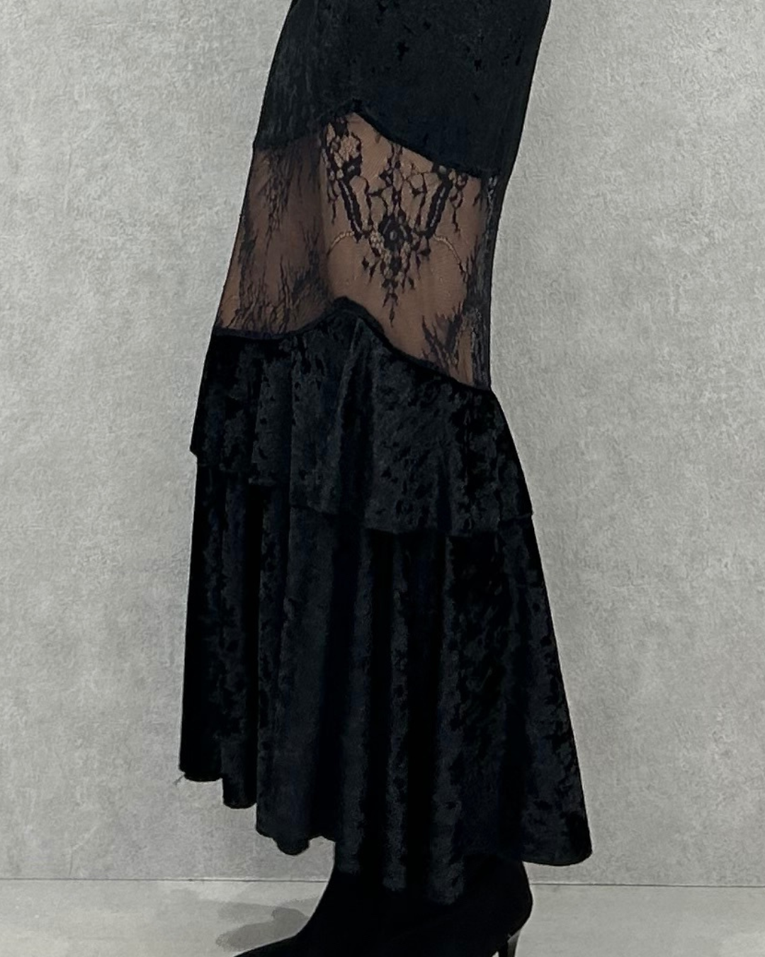 大人気アイテムのTR-10935をベロアにしたレーススカート。